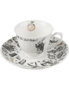 Taza de café espresso con plato de Alicia en el país de las maravillas