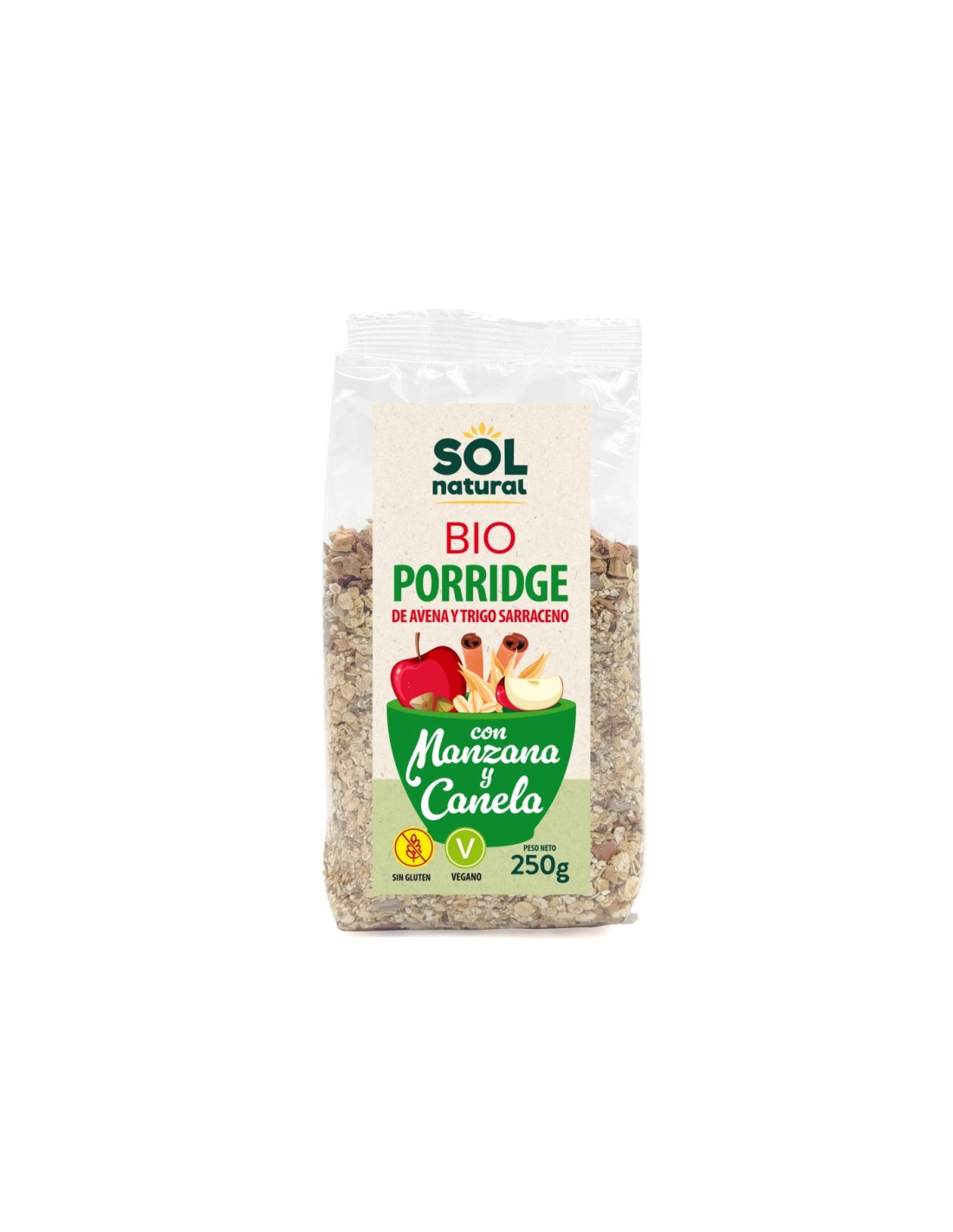 PORRIDGE MANZANA CANELA AVENA Y TRIGO SARRACENO BIO 250 GR SOL NATURAL