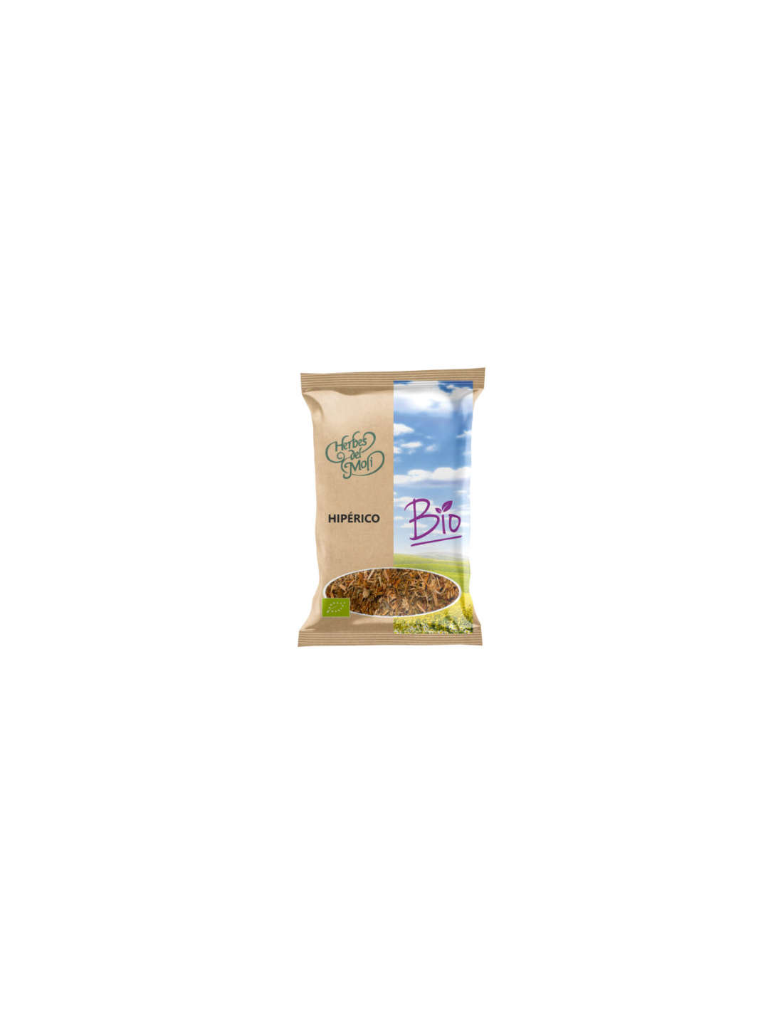 Hipérico (Hypericum perforatum), planta procedente de agricultura ecológica, elaborado por la marca Herbes del Moli.En la actualidad la principal aplicación del Hipérico es en el tratamiento de la depresión, aunque también está indicado en ansiedad, terrores nocturnos, trastornos neurovegetativos asociados al climaterio (andropausia y menopausia). Estas propiedades son debidas a la presencia de la hipericina en el hipérico.Asimismo, también actúa como antiinflamatorio, antiespasmódico y diurético, debido a las flavonas, aunque la acción más importante y estudiada es la antidepresiva.