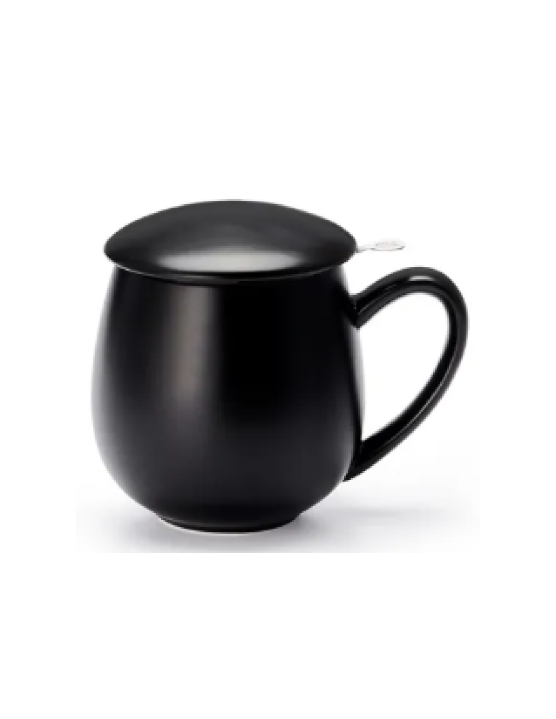 Taza negra de porcelana, con tapa, de 0,35 l. Incluye filtro de malla fina de acero inoxidable.