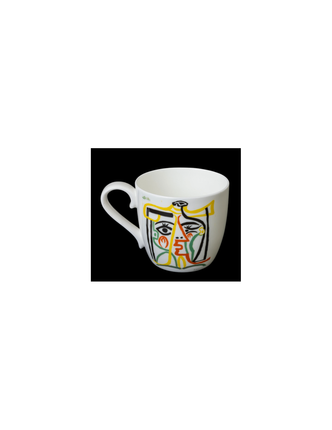 La pintura abstracta de esta taza es un retrato de su esposa Jacqueline. Creada en 1962, está catalogada como una de sus obras tardías.