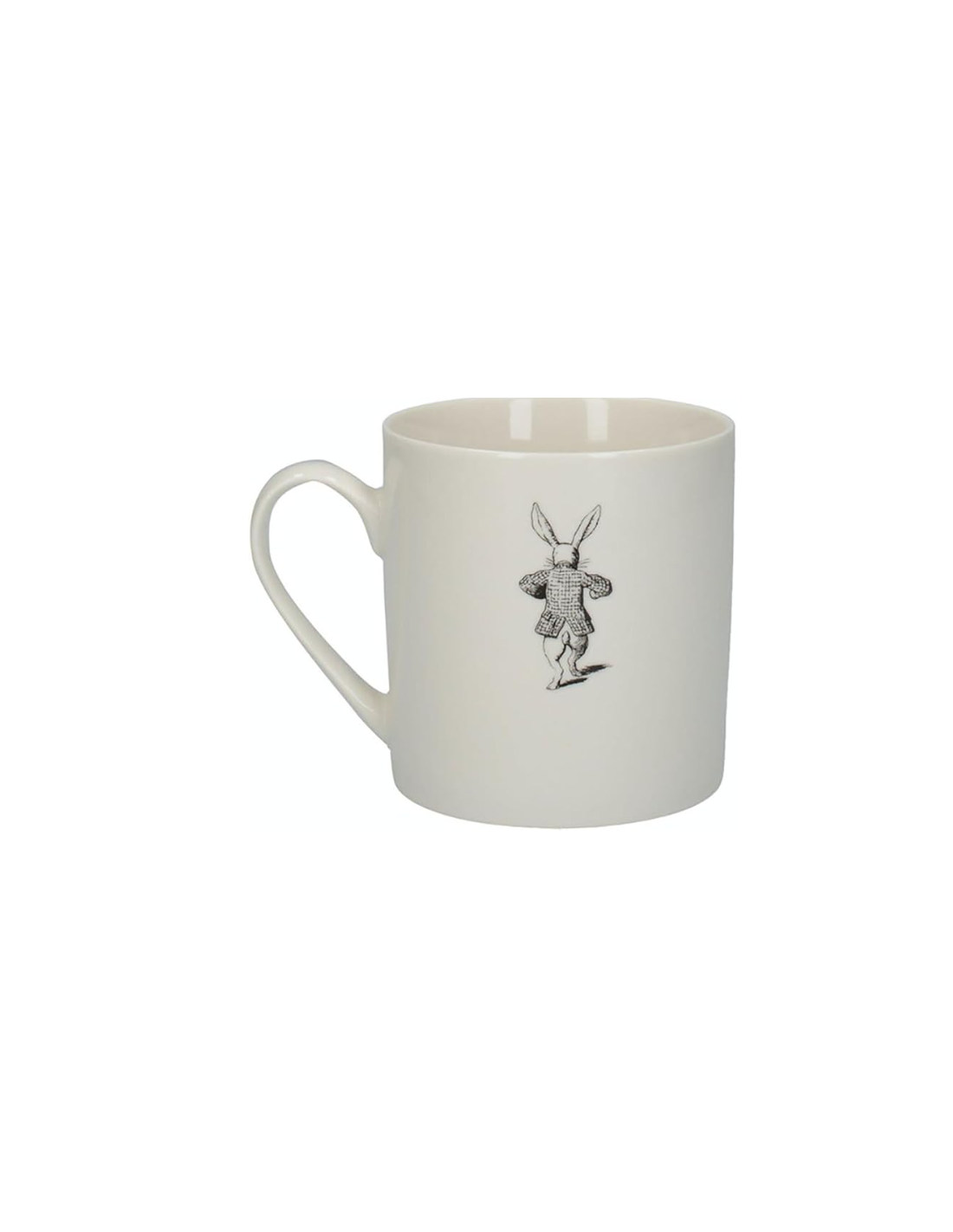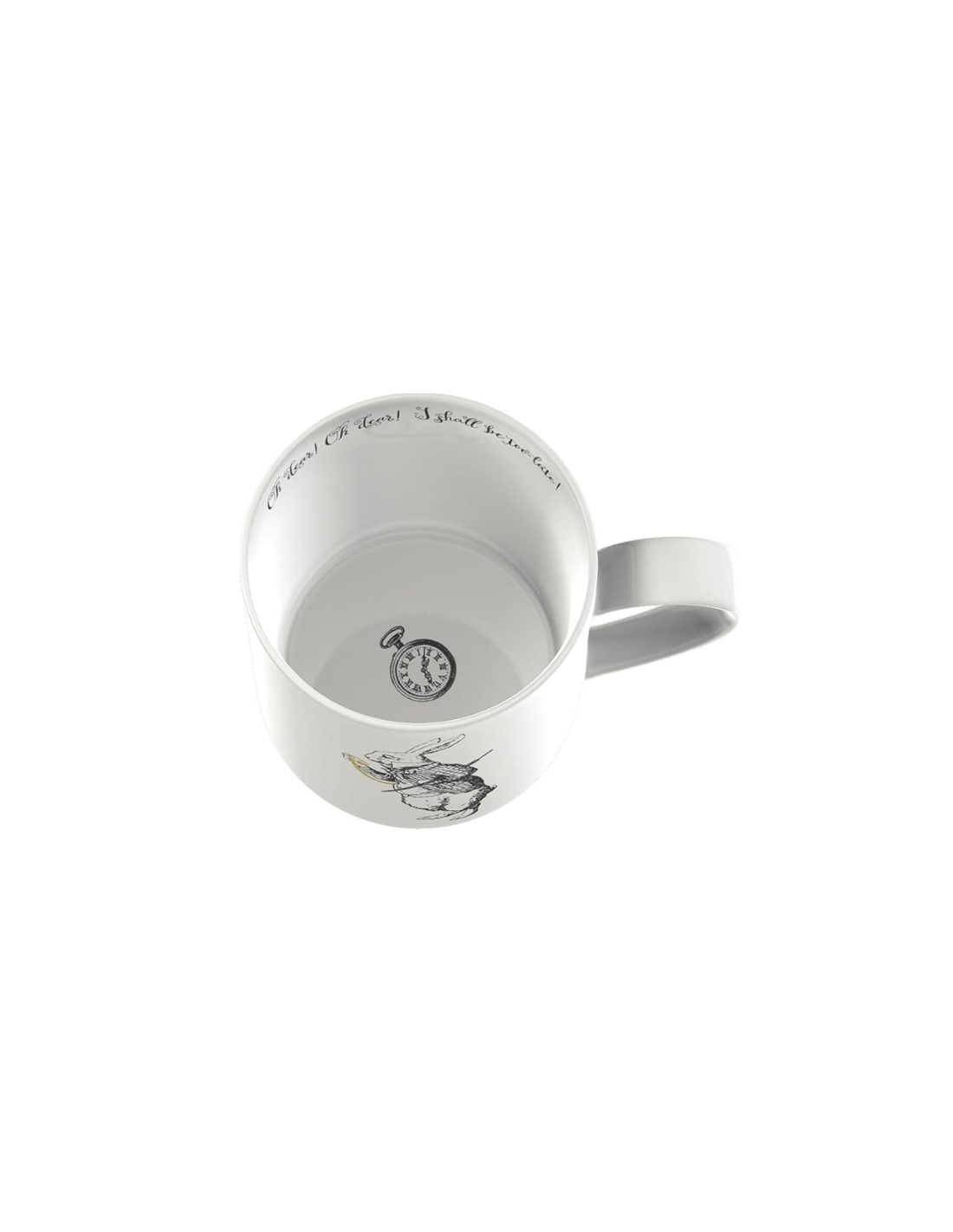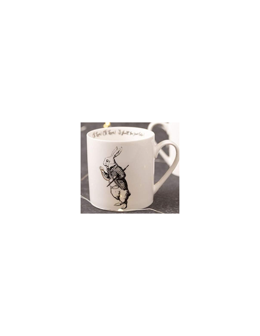 Taza de café espresso con plato de Alicia en el país de las maravillas
